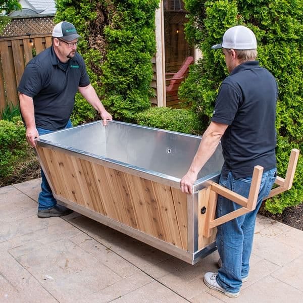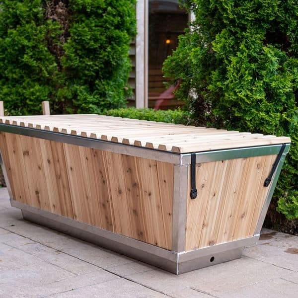 Boost your energy and elevate your mood with our Polar Cold Plunge Tub manufactured in Canada by Leisurecraft. Choose from a 304 Stainless Steel or White HDPE Plastic Interior and comes with a white cedar exterior. This is your quality solution for cold plunge therapy with or without a sauna. The optional roll up cover will keep your water clean when not in use and an easy to use drain that will connect to any garden hose is included with all cold plunge tubs. The total outside measurement is 71″x33″x25″ High with angled sides for easy in and out access and holds 190 gallons (720 litres) of water.