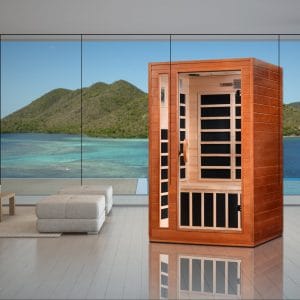 Golden Designs’ Near Zero EMF Saunas offer a natural, low-EMF thermal experience using PureTech Near Zero EMF Heating Technology. These saunas deliver FAR infrared heat with EMF levels kept under 2 milligauss (MG) at a close range of 2 to 3 inches from the heating panels.