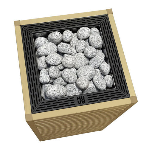Pure Nordic design of HUUM sauna heaters enhances the natural beauty of sauna stones and brings the sauna interior to life.