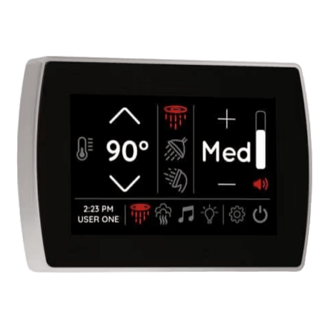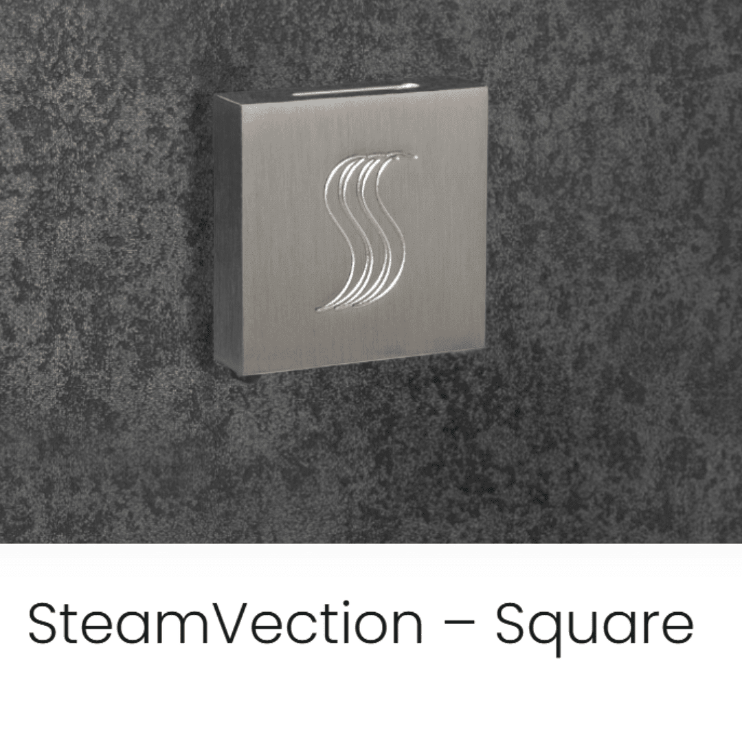 State-of-the-art floor-to-ceiling temperature uniformity within the steam shower. No more variable heat ranges. Also allows the closest proximity to the outlet to give you more usable shower space.