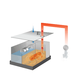 Provides steam at a constant rate while ensuring trouble-free reliability! Water is pre-heated in the steam generator’s water reservoir and passes to the boiling side on demand.