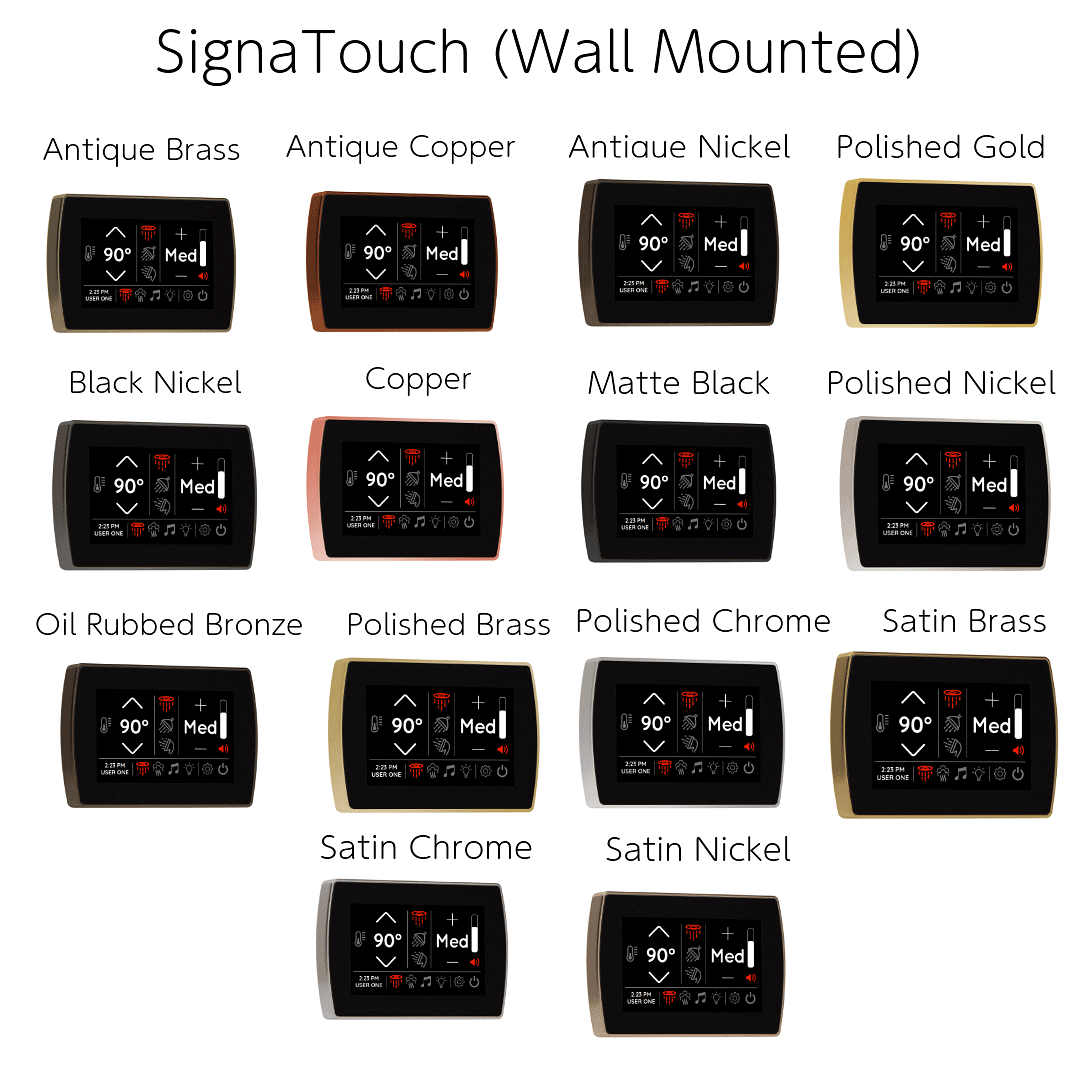 The streamlined SignaTouch Smart Touchscreen Control includes many of the same features as the ThermaTouch Control; operating steam generation, digital smart shower, light, sound and rainhead functionality, as well as flexible installation.